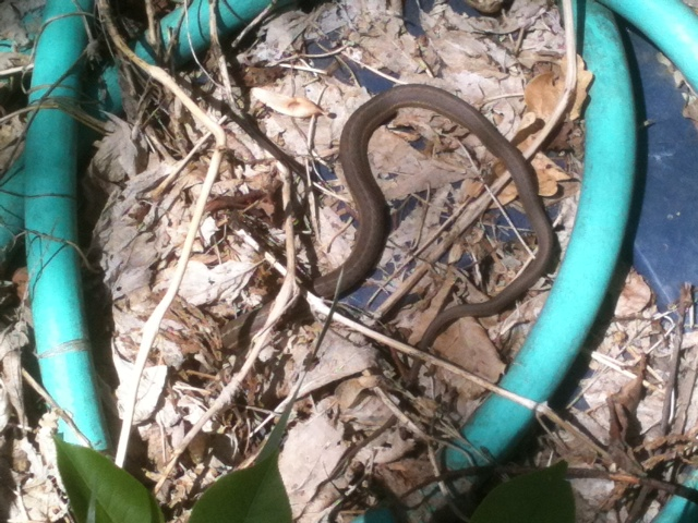In my neighborhood now, we have plenty of garter snakes that show up in the grass and under bushes. Although they make me nervous, and I had to get my son’s girlfriend to pick one up that was stuck on the patio, I’m not the most fearful around. One neighbor will mow her yard only if she is wearing her high rubber boots (boots and shorts in mid-summer makes a fetching scene). Another neighbor called us a few years ago when our cat was seen coming up her back walk with a writhing snake in its mouth. She ran around the house shutting all the doors and windows before calling us to the rescue.