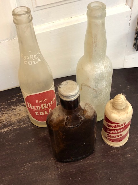 After a few hours, we surveyed our finds. We had a couple of intact, small bottles probably used for some kind of medicine, but most everything else was cracked or broken. There were quite a few indeterminate chunks of metal, nearly recognizable and tantalizingly mysterious. There was part of a wooden sign with obscured writing. What appeared to be bundles of cloth was possibly clothing or even just burlap bags or flour sacks stained brown by the decaying masses around them.