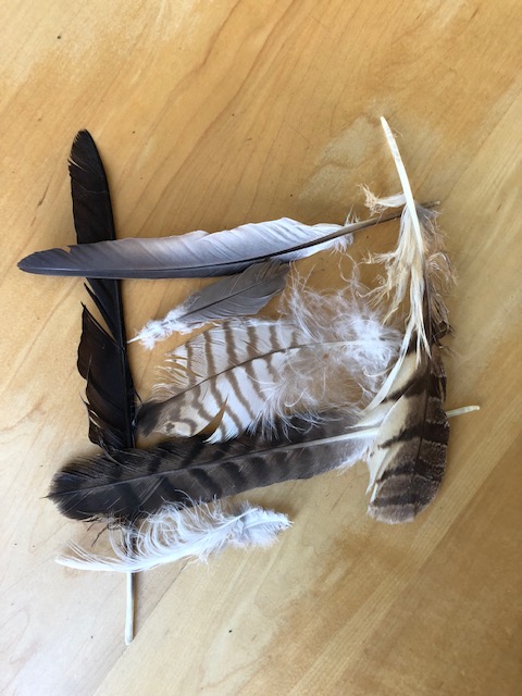 Frequently, when I check the feeders in the backyard, I find a feather on the ground below. I like to think of this as a thank you gift from the birds for providing food, habitat and a sense of belonging in my yard.