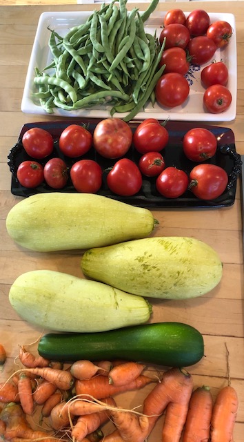 Of course, we still have a few winter squash left, and carrots stashed in the fridge. The freezer has some greens and beans from this year’s crop, but the pumpkin went into pies back in November. I guess it’s time to fully adjust my thinking to winter food — stews and chili and pot roasts, etc. — stuff we can get at the local Safeway. All is not lost, just stepped down a notch from summer.