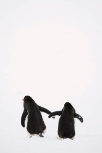 Bob followed Fred up to the slight rise covered in snow. He was smaller than his larger friend, and found walking uphill more difficult. Nonetheless, he hurried to be the first to the top, but only caused his friend to hurry more. With a shrill whistle, Fred heaved himself over the hill and began the long slide to the open water of the bay a hundred feet below. Clicking furiously, Bob followed, his smaller body proving more agile on the icy groove left by hundreds of sliding penguin bodies. They both hit the water at the same time, Fred skipping once with a huge splash, and Bob smoothly skimming the surface, then using his momentum to dive down into the green depths.